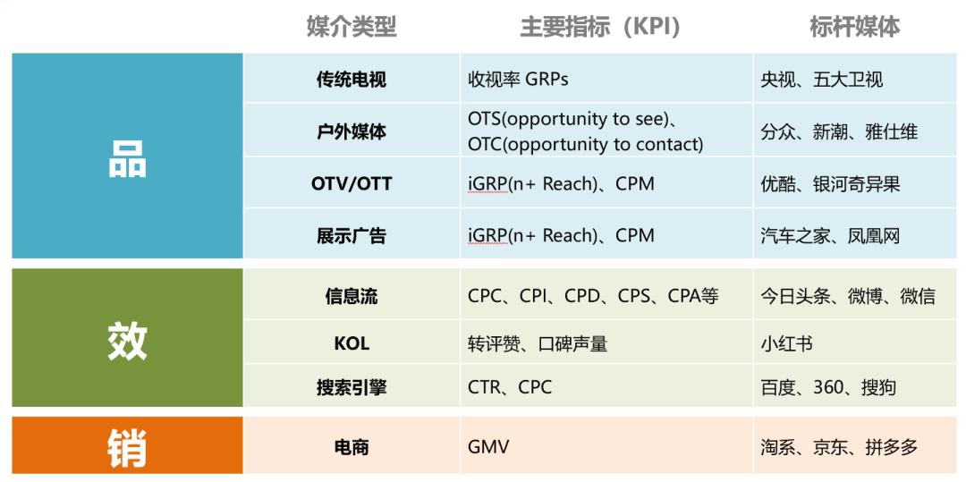 这个品牌会参考不同维度的数据综合评估投放的效果,但也不排除其他有些品牌只关注单一指标,或者个别核心指标。每个品牌都应该建立符合自身特征的测量体系,没有什么黄金法则是可以通用的。