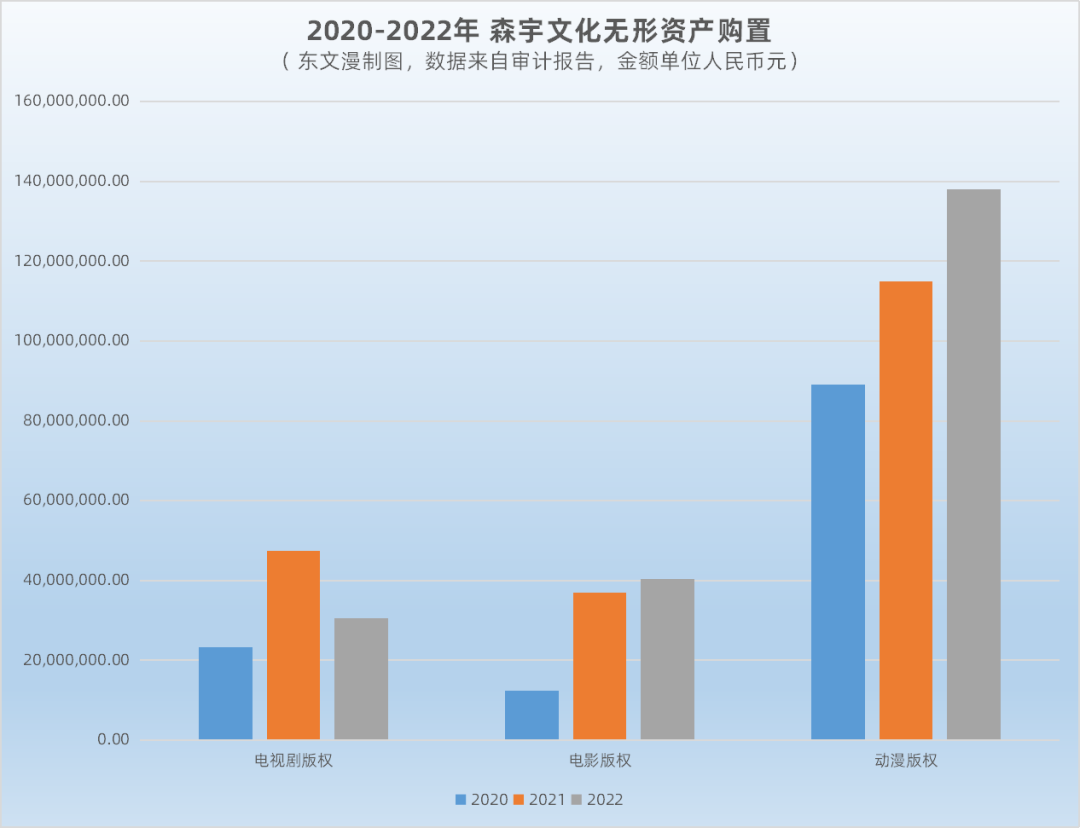 仅2022年度,森宇文化的无形资产中动漫版权新增购置金额就达到1.38亿元。