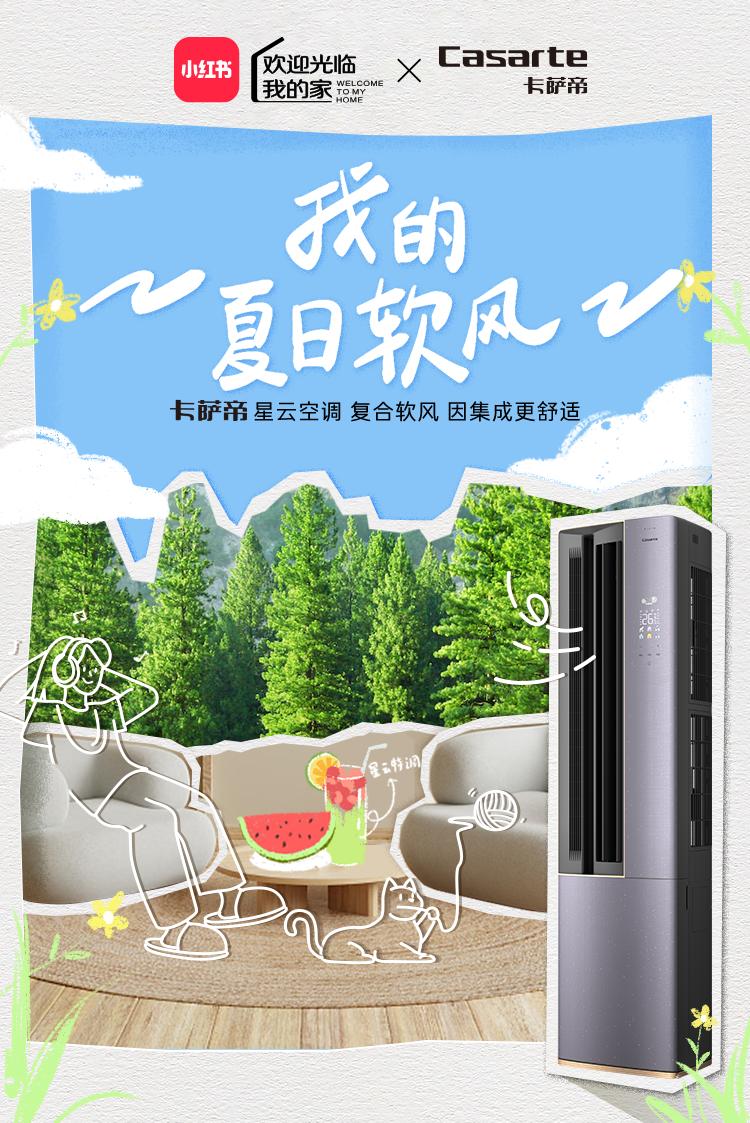 为了搭建品牌与用户之间真诚交流的桥梁,小红书以独具风格的家居生活场景IP「欢迎光临我的家」作为合作阵地,再次合作高端家电代表卡萨帝空调,并联合发起了#我的夏日软风 主题活动。
