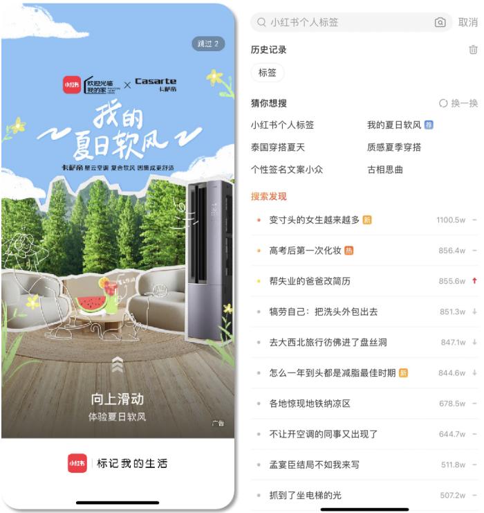 他们熟练利用便利的社交平台查找相关攻略,在小红书上搜索“自然”两个字就能看到1848万+的笔记,涉及到了衣食住行玩等各个方面,已然成为年轻人生活方式的重要参考。除了这些独具风格的各种笔记,一些国民度高的话题也在这里焕发新的生命力,比如炎炎夏日离不开的保命CP——空调。