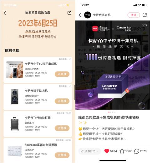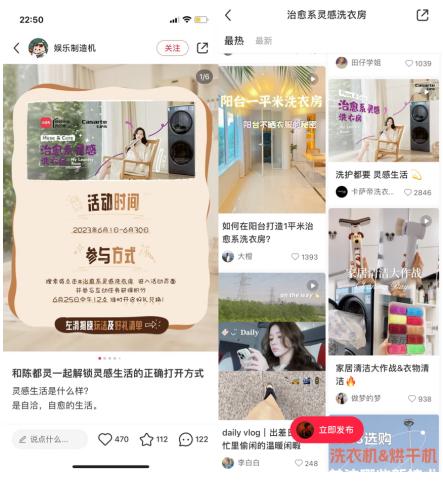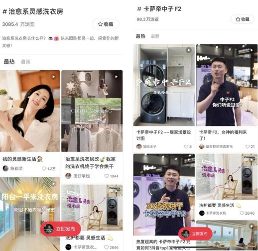 洞察到站内用户的高频需求,小红书家居生活类IP「欢迎光临我的家」再次携手高端家电代表卡萨帝,以“质感明星种草合作——IP达人多元扩散——UGC用户广泛参与——官方多线联动”为核心链路,与大家共同走进治愈系灵感洗衣房。