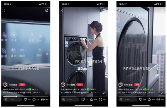 视频以“搬家和洗衣房场景”为切入点,结合生活场景软性种草,先感性后理性,从治愈系场景自然过渡到性能驱动,以强大的3个核心新品卖点“3D透视烘干、纯平嵌入美学、养护空气洗护理”不断强化用户的使用体验,让大家深度体验到产品带来的舒适便捷和更多悦己的情绪价值,携手品牌打造家居时尚新潮流。