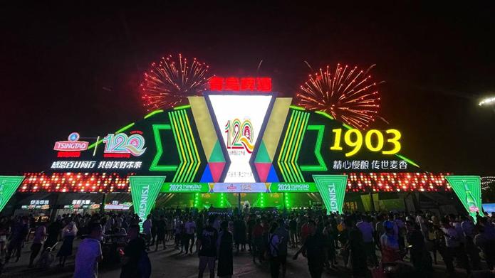 据悉,青啤今年在金沙滩啤酒城设了两个大篷,开幕式第一天共接待了近万人次,平时日均客流量也在5000人次左右,是人气最火爆的一年。今年恰逢青岛啤酒120周年华诞,金沙滩啤酒城推出了众多创新产品和主题活动。青啤大篷运营负责人表示,全麦拉格精酿啤酒和绝世红颜精酿果啤是为本届啤酒节专门打造的,很受游客欢迎。拥有纯生、黑啤、海盐IPA等6种口味的啤酒冰淇淋也销售火爆。今夏啤酒节汇集了40多个国家和地区的2000余款品牌啤酒,达到历年之最,让游客“一次参节畅饮全球”。