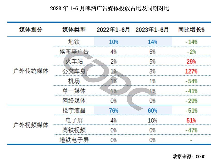 今年投放户外的啤酒广告客户明显增加,同比上升14%,有更多的广告客户倾向投放二三级市场,哈尔滨、武汉、重庆、沈阳、昆明、济南等城市的广告投放同比增长超八成。