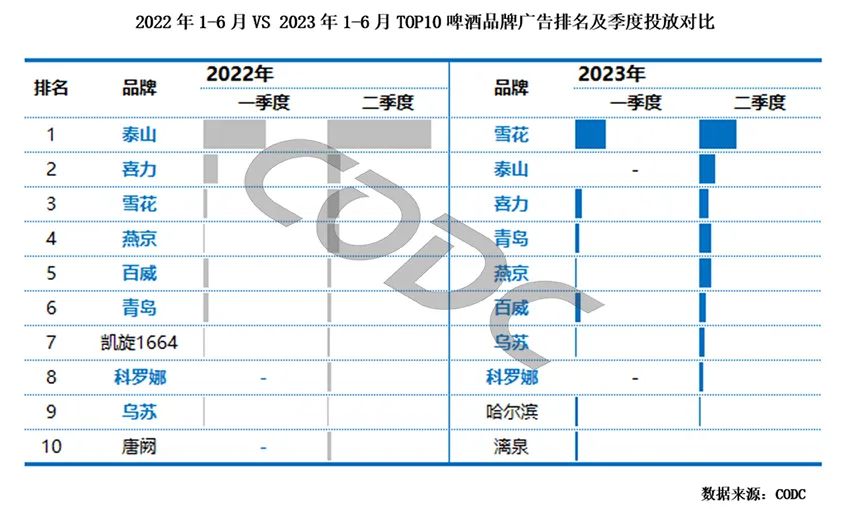 从季度投放看,随着夏季啤酒节的到来,啤酒广告的投放热情持续走高,雪花、泰山、喜力、青岛、燕京、百威、乌苏、科罗娜等品牌广告纷纷放大宣传声量,不断提升品牌知名度和销量。