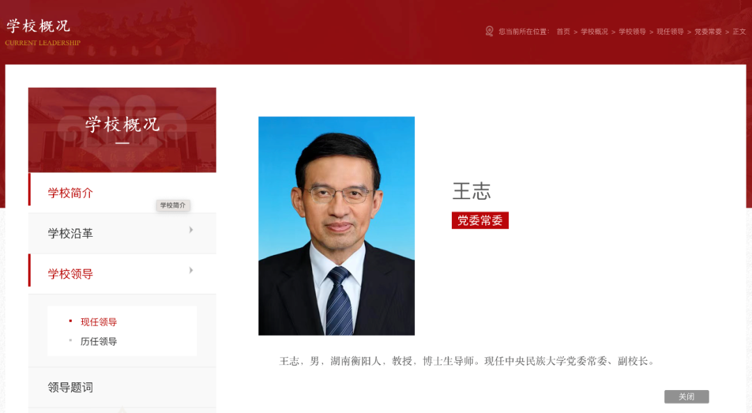 官网显示,中央民族大学目前有7位副校长,王志是其中一位。