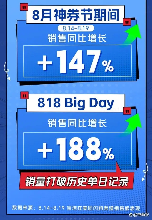 “本次在美团闪购的牵头下,宝洁与肯德基两大集团强强联动,跨界共赢。”宝洁即时零售渠道总经理顾健鑫表示,作为日用品类首次和餐饮渠道的“超级CP”合作,活动期间,8月18日及8月19日,连续刷新宝洁在美团闪购的年度销售额单日销售记录,“未来,宝洁会携手美团闪购,持续打造行业标杆案例,进行品类增长及用户心智渗透的不断突破与深耕。”