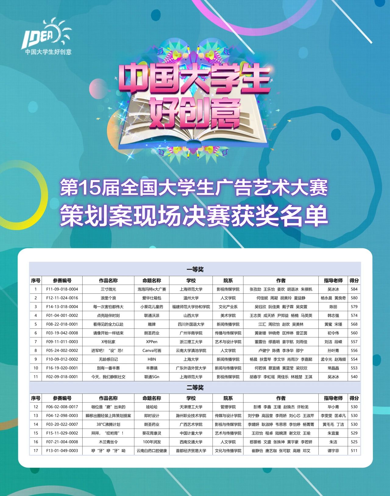 “中国大学生好创意”全国大学生广告艺术大赛策划案现场决赛是一场凸显创造性人才培养的教育本质与功能的实战演习,是一台符合Z世代青春特质的广告饕餮盛宴,更是一次对大广赛专业引导力与行业融合力的深入探索与实践。在这一场最贴近行业比稿形式的决赛中,我们看到了创意与新思潮的碰撞,看到了无限的活力与意志的较量,看到了每一名选手不遗余力的创作与成长……雨后的彩虹美丽夺目,赛后的人生繁花似锦!感谢所有参赛师生,期待你们在未来的人生路上锐意创新、砺行致远,怀揣梦想、绽放光芒。