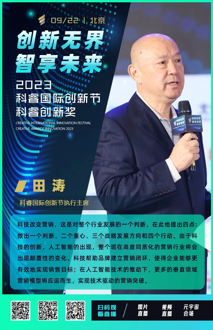 2023年9月22日,由北京广告协会指导,科睿国际创新节组委会主办,广告之家信息科技(北京)有限公司承办的2023科睿国际创新节暨科睿创新奖颁奖盛典在北京新云南皇冠假日酒店圆满落幕。2023科睿国际创新节高峰论坛围绕“创新无界 • 智享未来”主题理念,共同探讨新时代背景下的创新新思路。本次高峰论坛探讨话题将围绕融媒体时代、私域价值、AIGC应用、元宇宙空间、IP视界、全域营销、带货洞察、科睿海外版等。此外,九大创新领域升级密码,解析数字经济时代的增长轨迹,如何开启新通道,拉开新局面,科睿国际高峰论坛正在以崭新的视角放眼行业,与创新者同行。