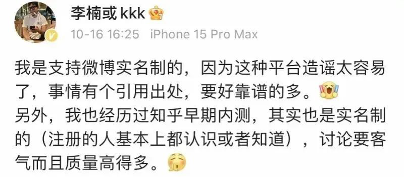 支持方认为此举有助于厘清网上谣言的来源。魅蓝首任总裁李楠表示支持微博实名制,“造谣太容易了,事情有个引用出处,要靠谱得多。”