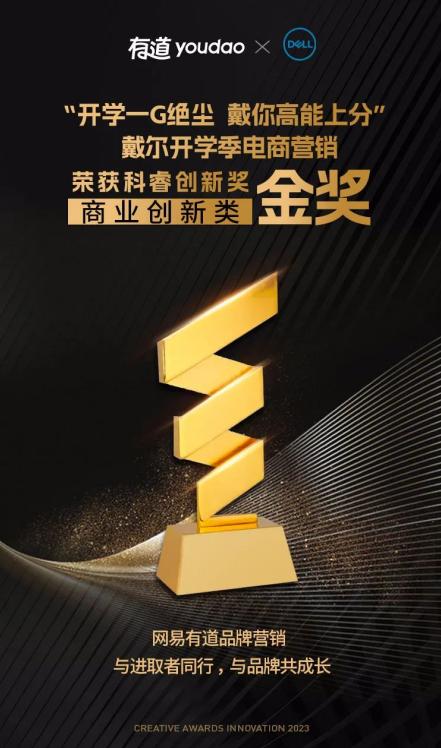 科睿创新奖一直以来都是业界公认的专业奖项,旨在表彰那些在创新思维、创意执行和市场效果等方面取得卓越成绩的广告营销案例。本次合作得到了科睿广告奖的肯定和认可荣获银奖,更是进一步证明了戴尔与网易有道共同开展的开学季营销活动的卓越创意和商业创新。网易有道X戴尔开学季营销斩获科睿创新奖商业创新金奖,进一步证明了其在营销领域的成功和影响力。戴尔游匣系列笔记本通过这一创新活动,成功吸引了大学生群体的关注和购买意愿,为品牌带来了良好的口碑和市场表现。