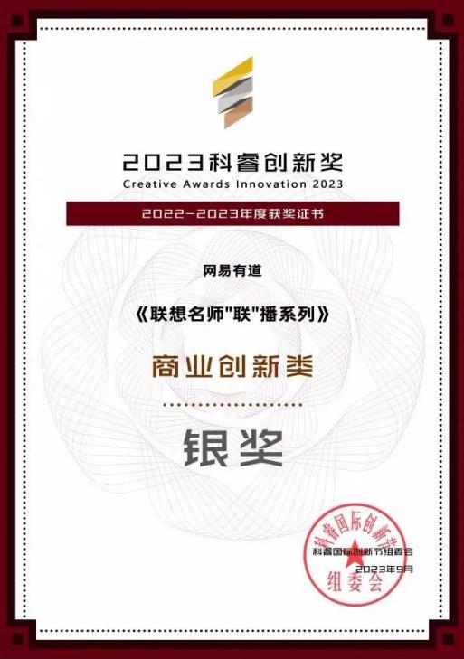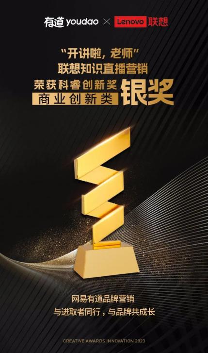 网易有道联合联想,凭借《联想名师“联”播知识营销》方案,获得2023年度科睿创新奖商业创新类银奖。该IP以知识联播+名师联盟+好物联动+内容联欢四大板块为核心策略,打造了一个爆款直播公式,旨在助力大学生在联想产品的加持下更好地学习生活。联想知名主播+网易有道名师联盟共同打造出直播知识盛宴,同时,联想产品也成为了营销中的重要推广载体,通过产品的硬核加持,进一步提高了大学生学习生活的趣味性。该知识IP自2022年开学季开始,得到了广大大学生的积极响应和参与,成为了知识营销领域的一大亮点和标杆。