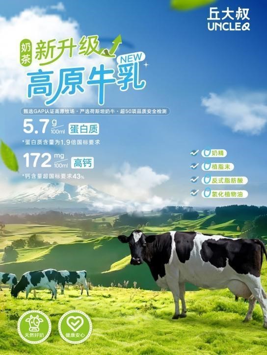 作为引领新派柠檬茶品类的广东本土新茶饮品牌,丘大叔早前同样抢先加入这场“升级战”,正式宣布奶茶全新升级,强势推出高标准独家定制高原牛乳,富含5.7g/100mL蛋白质和172mg/100mL高钙量,蛋白质含量超出国际要求1.9倍,钙含量超出国标要求43%,营养品质堪比牛奶消费市场上众多高端纯牛奶产品。同时更表示新基底“0植脂末、0奶精0、反式脂肪酸、0氢化植物油”,更高打造4个“0”升级牛乳健康标准,健康低卡轻负担,以兼具更营养和更健康的双重实力成功突围“奶基底升级大战”。