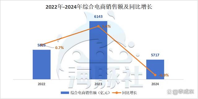 具体来看综合电商的表现。综合电商平台销售总额达5717亿元,同比下降6.9%。综合电商本来就是618的主力,销售额表现不佳直接影响全网战绩。