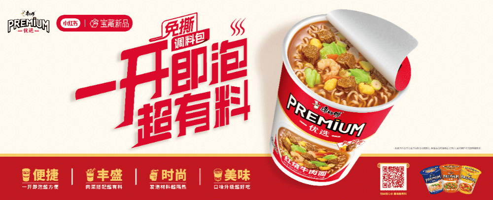 主打“一开即泡 超有料”的PREMIUM优选杯面,以丰富配料与便捷体验,革新即时用餐场景。