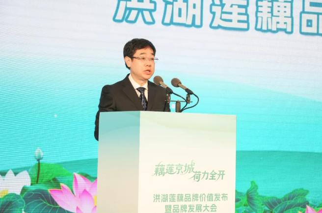 湖北省农业农村厅党组成员、总经济师曾德云在致辞中强调:品牌扶持政策构建起“省级重点品牌+市县特色品牌+企业产品品牌”三位一体的品牌矩阵。目前洪湖莲藕已打造成全省唯一的莲藕省级重点区域公用品牌,先后入选农业品牌精品培育计划和中国农业品牌目录,获得国家地理标志产品、中国百强农产品区域公用品牌等殊荣。他表示,省农业农村部门将落实“藕七条”扶持政策,在基地建设、精深加工、冷链物流、品牌营销等方面给予全方位保障。