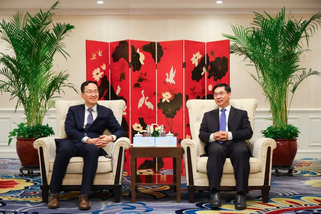 △签约活动前,齐竹泉与方存好会谈交流