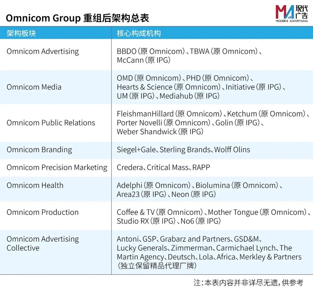 本周一,宏盟集团正式公布了新的公司架构,新架构将由以下几个主要部门组成(注明:此列表并不完整):