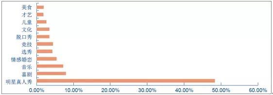 2、文化生活类题材表现亮眼,明星真人秀受众巨大;