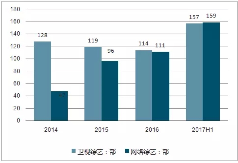 【2014年—2017年卫视综艺和网络综艺数量情况】