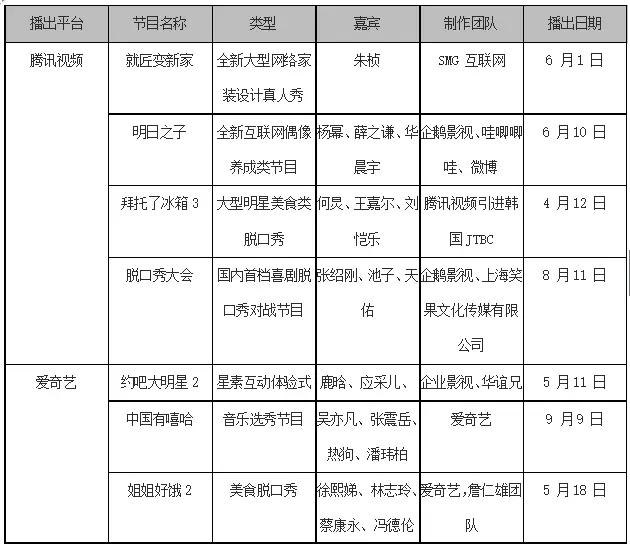 今年上半年1到4月份,各大视频网站已经推的网络自制综艺节目接近了60档,今年也会继续保持增长。
