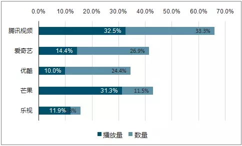 腾讯作为在电视剧播放量和播放数量上居于前列的视频网站之一,在综艺播放上也有着不俗的表现。优酷网在电视剧播出上作为主力网站,在综艺播出上却不及腾讯和爱奇艺两家。
