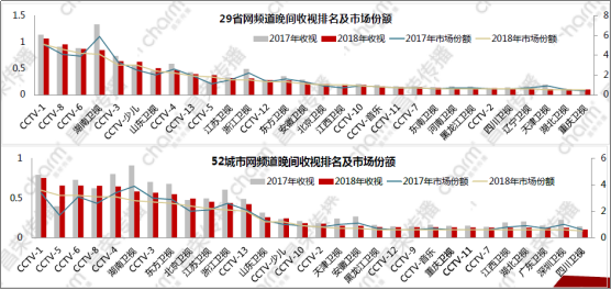 央视最大的优势之一就是自身拥有最权威的资源和最稀缺的资源,包括体育,新闻等,因此每到重要的“体育赛事年”央视体育频道的市场份额无论是排名还是增长率均处于电视频道前列,同时也有效拉动央视整体的份额持续保持坚挺。而卫视频道受到大事件影响,收视表现整体呈下滑趋势,头部卫视的份额均出现不同程度的阶梯状下降。