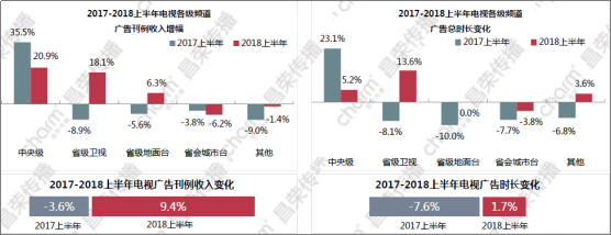 随着网络内容在国家监管下回归良性发展,超级网综不断地涌现,人们的触屏习惯越来越IP化,这样的趋势虽然分流了高花费,高比重的电视广告,但凭借上半年稳定的影响力和大事件的激发,电视广告无论是广告收入还是时长,继续呈现增长态势。