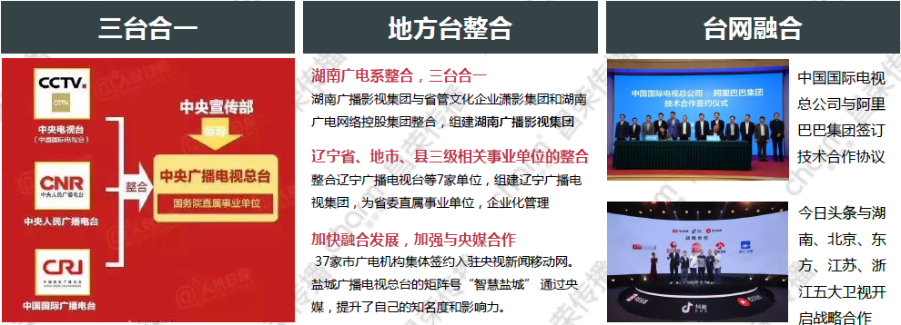 随着三台合一的完成,全国迎来全媒体新时代:湖南广播影视集团成立,组建辽宁广播电视集团,37家市广电机构集体签约入驻央视新闻移动网等。