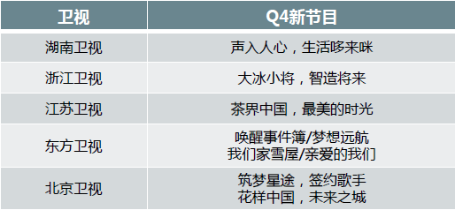 从目前公布的2018年第四季度的新栏目来看,以头部频道为首的卫视群继续加大原创节目的策划与制作力度。