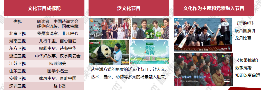 这些节目将文化作为主体元素融入节目当中,不仅凸显文化自信的传统,深度文化的传递,更容易提升品牌溢价,创造多维、深远、立体的节目品牌影响力。