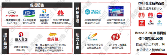 经过两年的 “国家品牌计划”,将社会效益放在第一位,推动中国品牌的产业链结构升级,激发更多企业的创造创新活力,并提升了中国品牌的国际影响力和竞争力。截止目前,2018全球品牌百强国品成员有6家入选如华为,工商银行,茅台,京东等。