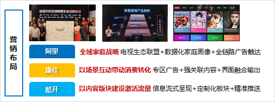 3.酷开以“内容板块化,分人群运营”为核心,重视用户浏览习惯,提供差异化内容展示和专题广告,激活基础用户流量,提供精准触达能力。