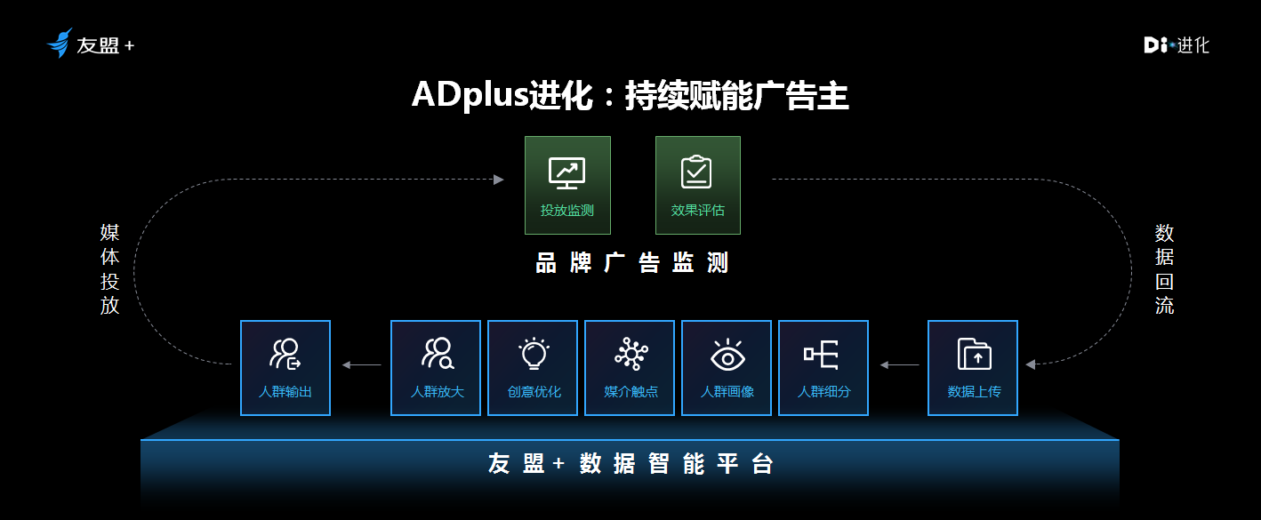 而针对数据营销市场,通过数据智能平台的赋能,ADplus正在让数据成为营销的基础设施。友盟+将互联网媒体、OTT媒体、户外媒体等数据化,进而实现营销链路的打通与串联,真正围绕消费者所思、所需、所行去组织营销活动,“更像是在重塑营销内核”。
