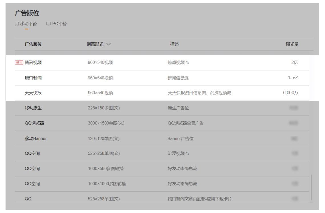 腾讯新闻、腾讯视频、天天快报视频广告均支持自助竞价购买,登陆e.qq.com,广告主在“广告版位”选择环节选择 腾讯新闻、腾讯视频、天天快报视频规格,即可投放至相应的信息流位置。