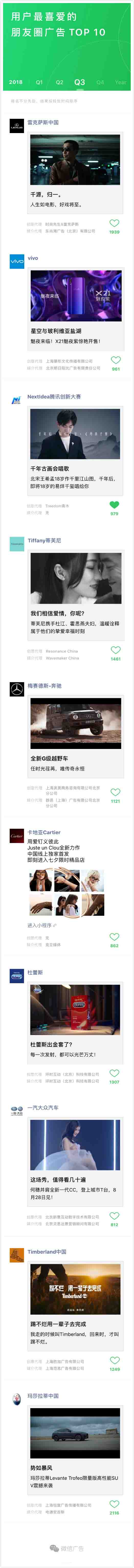 近日,微信广告基于用户的互动行为及广告效果数据指标,找出了2018年第三季度“用户最喜爱的朋友圈广告”TOP10 (榜单内排名不分先后) ,让更多好创意与你相见。