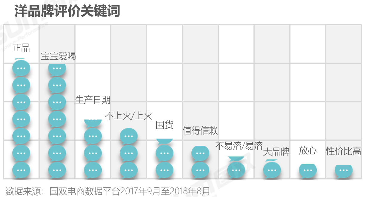 在电商渠道,洋品牌会有短暂缺货的情况,所以很多用户在购买洋奶粉时会有意囤货,避免宝宝断粮。
