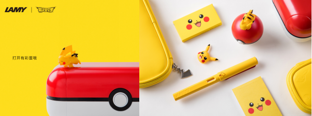 仍是双十一前夕,天猫推出诸多跨界营销案例,其中包括德国网红钢笔LAMY联合卡通形象皮卡丘推出的联名定制礼盒,礼盒包含一支皮卡丘墨水笔,一个不倒翁精灵球,一个皮卡丘笔袋和两个皮卡丘挂饰,备受追捧。