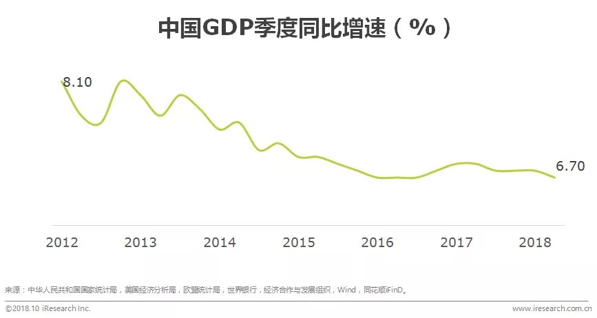 2018年中国GDP季度同比增速进一步放缓,依靠投资和供给增加的手段对GDP的支撑乏力,刺激消费增长成为拉动经济增长的主要手段。