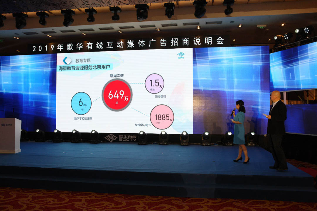 2018年11月19日,2019年歌华有线互动媒体广告招商说明会在歌华开元大酒店召开。一百余位广告主、4A公司、数据公司代表齐聚一堂,参与这场北京互动媒体广告招商的盛会。