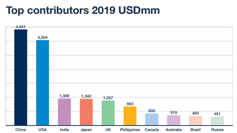 报告显示,10个国家将贡献2019年增长总额的83%。