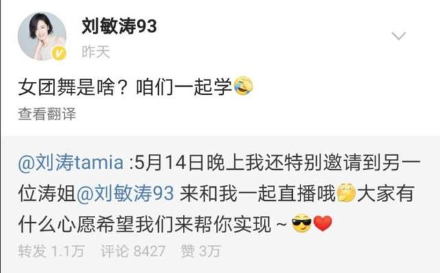 很多网友鼓励她前去踢馆、出道,制作了各种各样的表情包和应援图,就连马上要和她一起直播的刘涛也玩起了梗,问她要不要一起学跳女团舞。