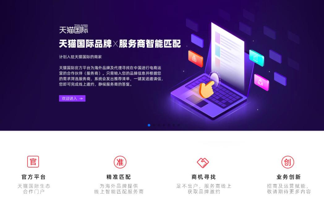 阿里5年2000亿美元进口再度升级海外品牌服务能力。5月26日,天猫国际正式上线海外品牌“服务商智能匹配”平台,加速海外品牌“云入驻”,助力商家便捷、高效拓销中国市场。