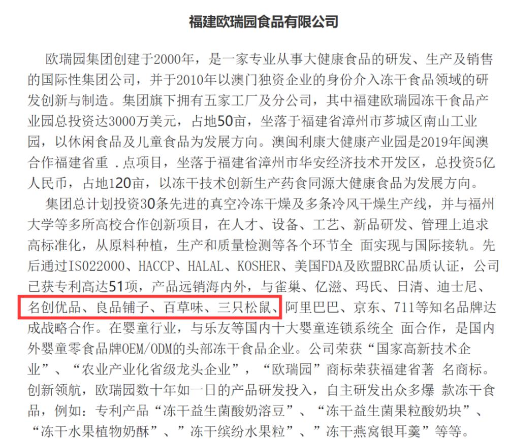 更加值得关注的是,在这几家委托工厂的官网中均清晰表明,除与良品铺子合作外,厂方也同时与公司竞品三只松鼠、百草味等有直接合作。