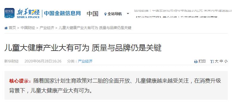 在日前举办的“2020消费升级与儿童大健康战略研讨会”上,与会专家认为,随着国家计划生育政策对二胎的全面开放、儿童健康越来越受关注,在消费升级背景下,儿童大健康产业大有可为。杏璞品牌受邀出席本次大会,与国家卫生健康委员会、国家药品监督管理局相关领导与专家,共同探讨消费升级与儿童大健康市场动态,共话当前机遇与挑战,展望规划和愿景。新华社对本次大会盛况进行了深入报道。