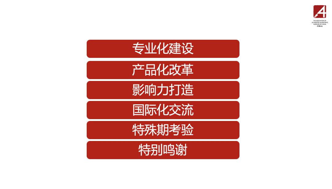 “原本应该在年初进行的会员大会以及传统在同一个时期举办换届的投票选举活动,竟然碰上一个百年不遇的疫情,让我们几乎来个措手不及。幸而,中国 · 4A 的广告人一向都是足智多谋的、也是临危不乱的,中国 · 4A 的广告人更是能够顺势而为,适者生存的一个特有行业品种。我们是具备多元化专业的强大队伍。在这个日新月异,竞争激烈,市场变幻莫测,科技不断创新的市场环境里头,“适者生存”,“顺势而为”就是硬道理。”