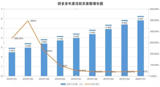 2020年第一季度财报显示,拼多多的年度活跃买家数已经达到6.28亿,单季度增加了4290万。根据第三方数据显示,增长的用户中青年用户增速超过了整体用户的增速,年轻用户逐渐成为平台购物的主力军。