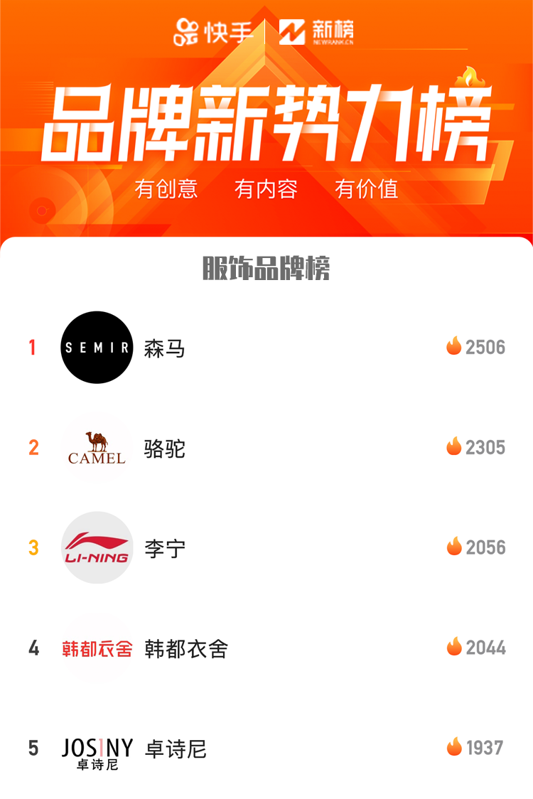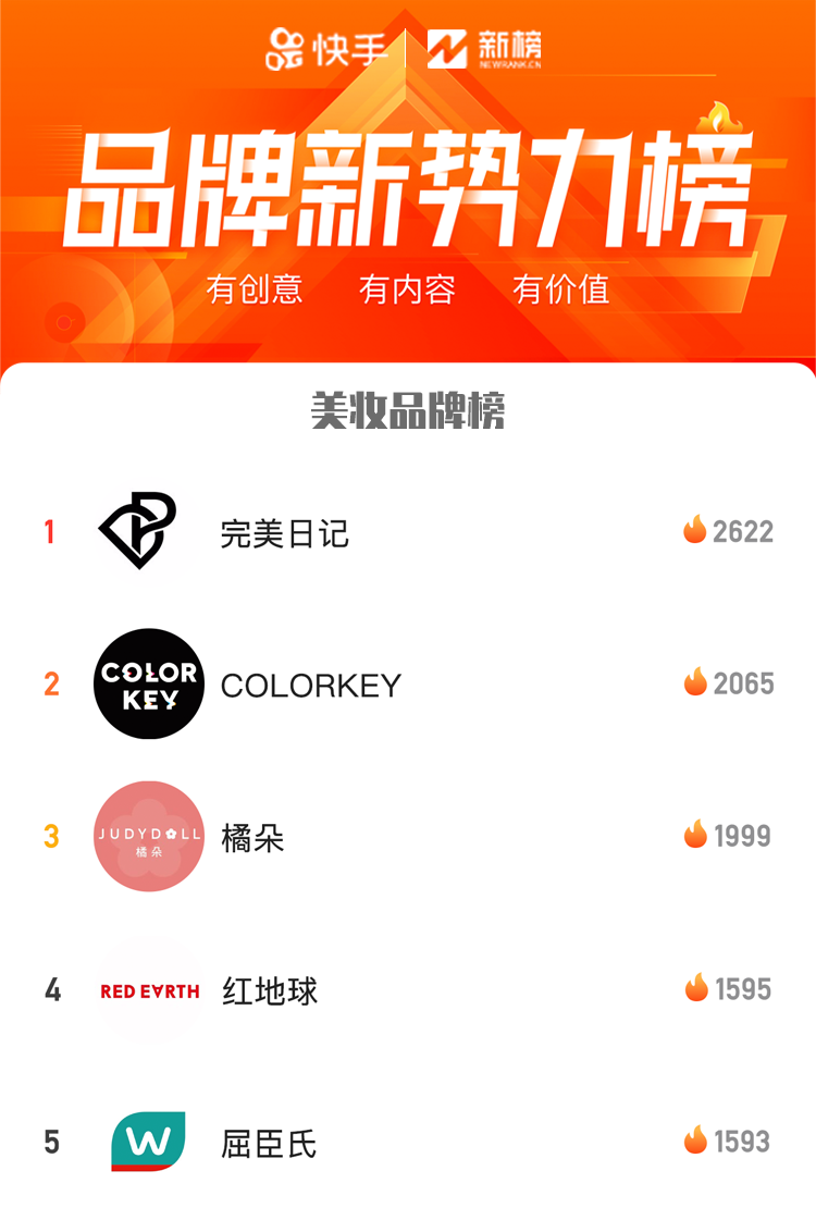 在此背景下,快手推出“品牌新势力榜”,以数据为基础衡量各品牌官方号在快手上的内容和变现能力,鼓励优秀品牌号继续在快手上活跃运营帐号、积累粉丝、沉淀品牌数字资产。