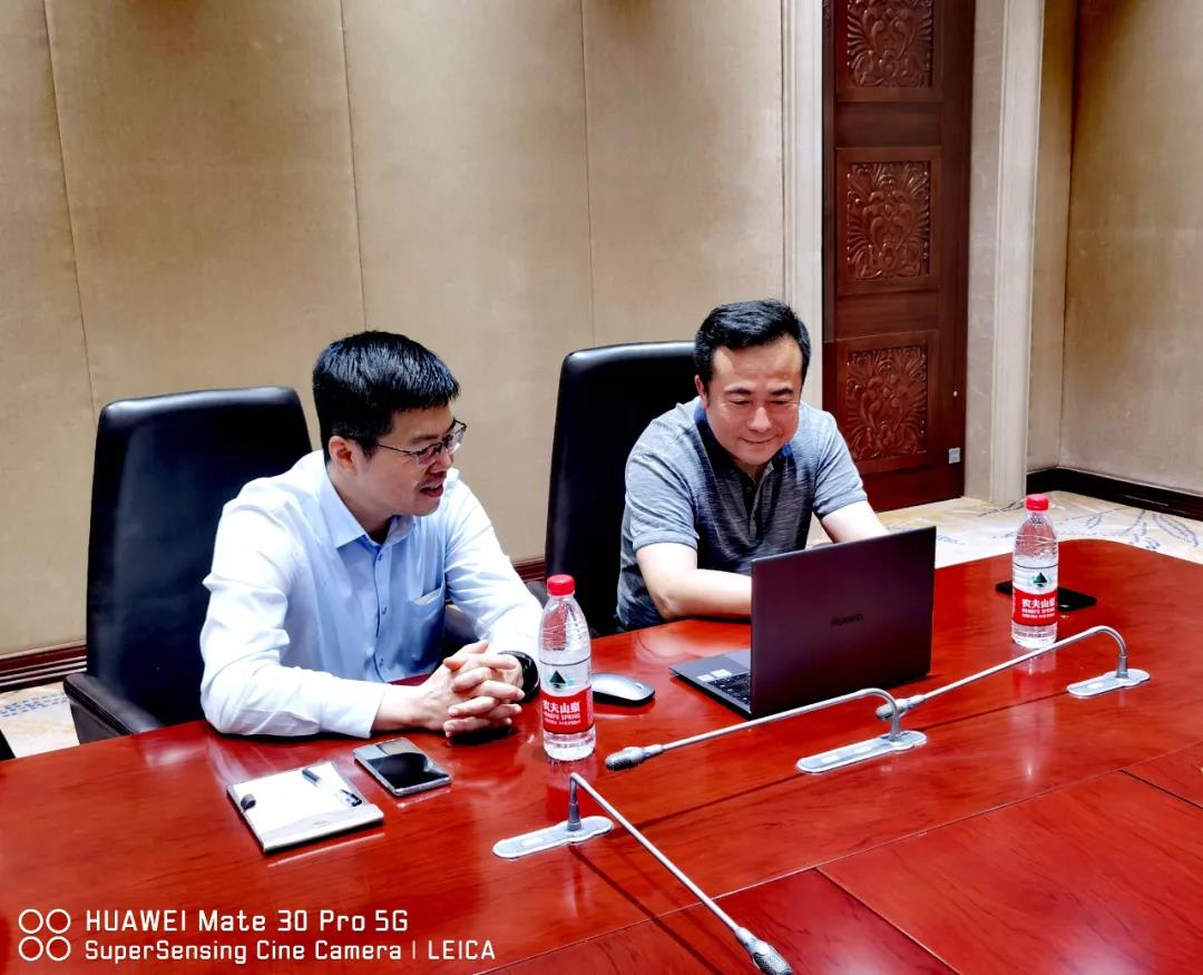 总台总经理室常务副召集人任学安和华为 Marketing 采购部部长程池就培训进行交流