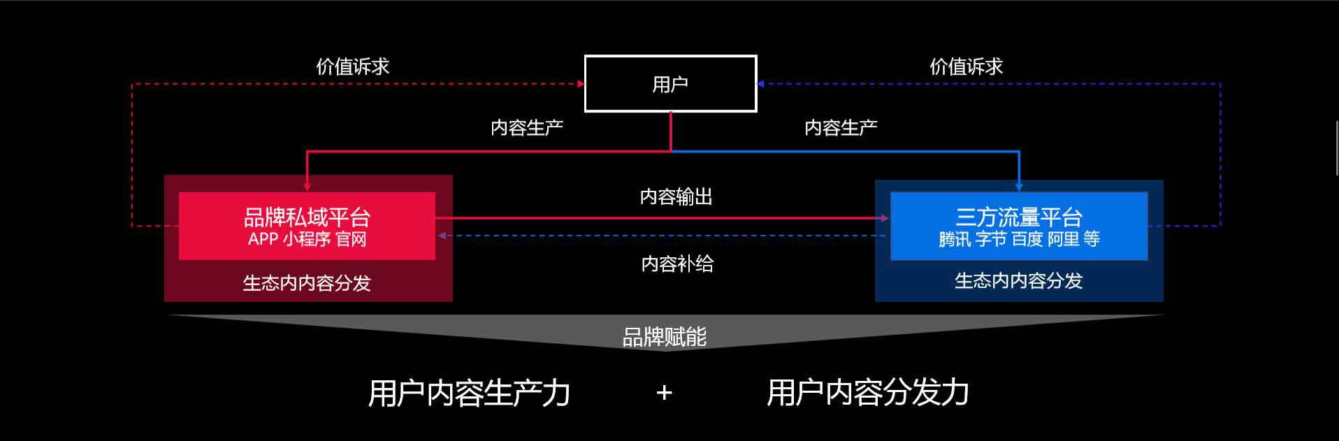 总结起来讲,就是要在数据、技术、运营、资源的基础之上,通过内容共创体系和用户价值体系,激活用户的内容生产力;通过内容发掘体系和内容分发体系,赋能用户的内容分发力,从而搭建起私域流量概念下的品牌内容营销赋能体系,全面激活用户价值,实现品牌与用户的共生、共创、共有,从而达成品牌的长效运营和商业增长。